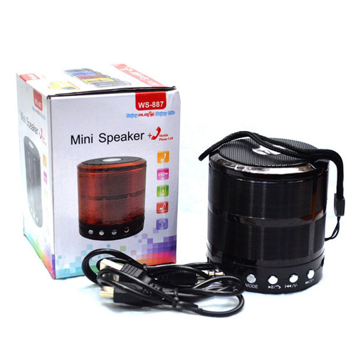 اسپیکر بلوتوثی قابل حمل مدل mini ws-887 با رنگبندی آبی، مشکی، نقره ای، طلایی، قرمز